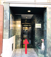 扉をあけて中まで入り、エレベーターで4階へお越しください。