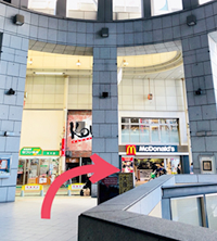 ベビーカーでお越しの際は、エレベーターのある3番出口を上がって、マクドナルドが左手に見える交差点へお進みください。