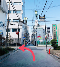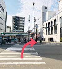 抱っこ紐で階段をご利用の際は11番出口を上がって、ファミリーマートを左手に見ながら直進します。